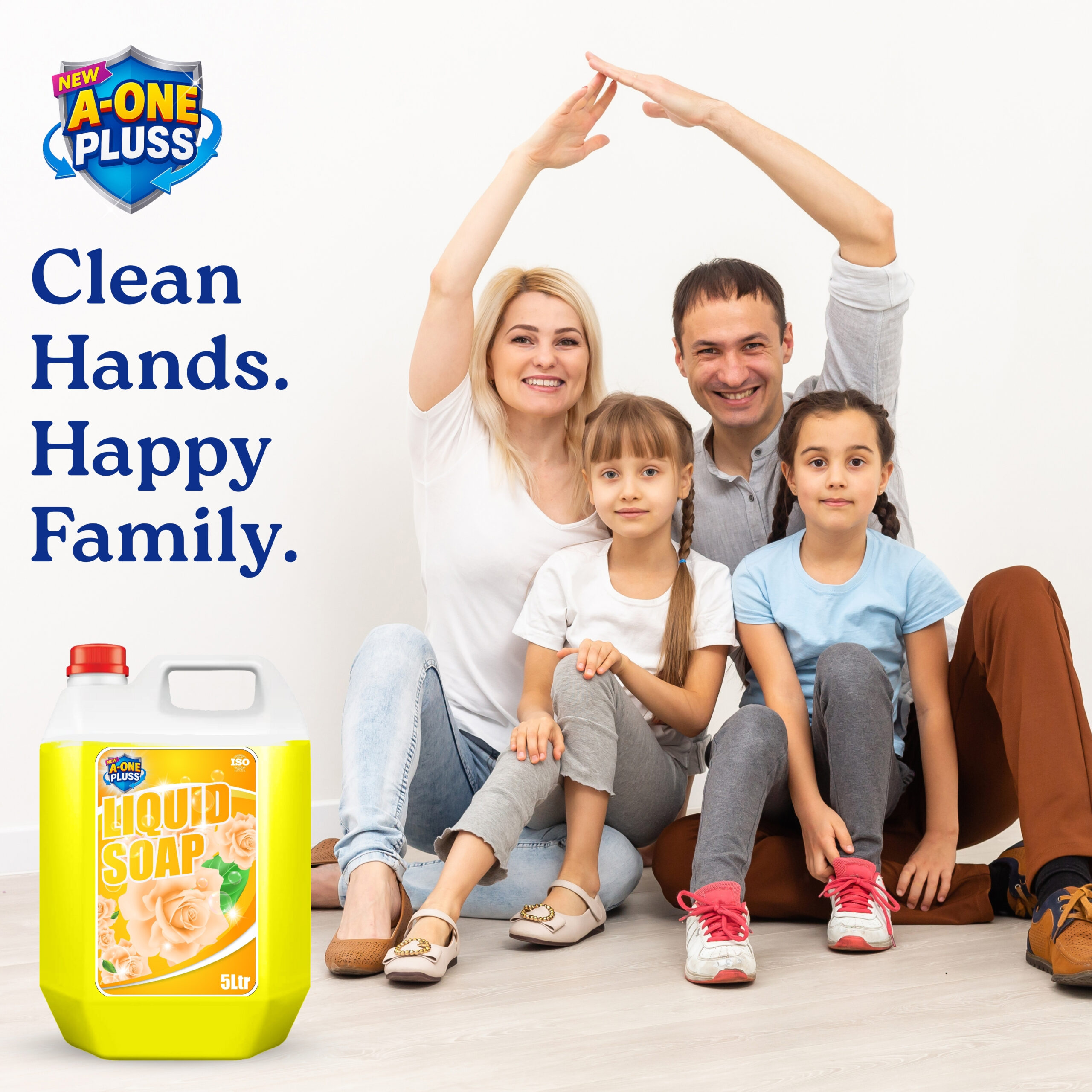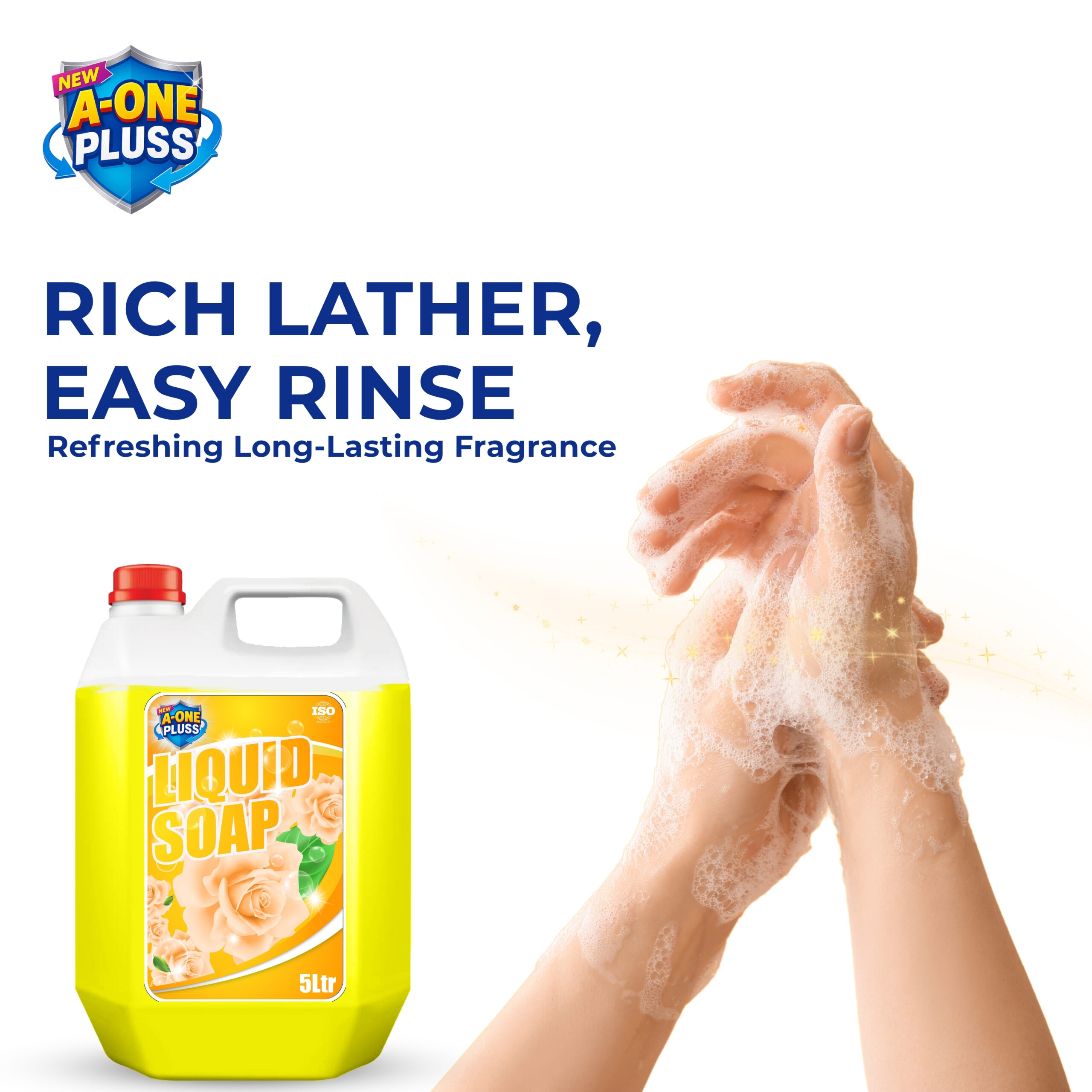 1. Apply a small amount of A-One Pluss Liquid Soap to wet hands.