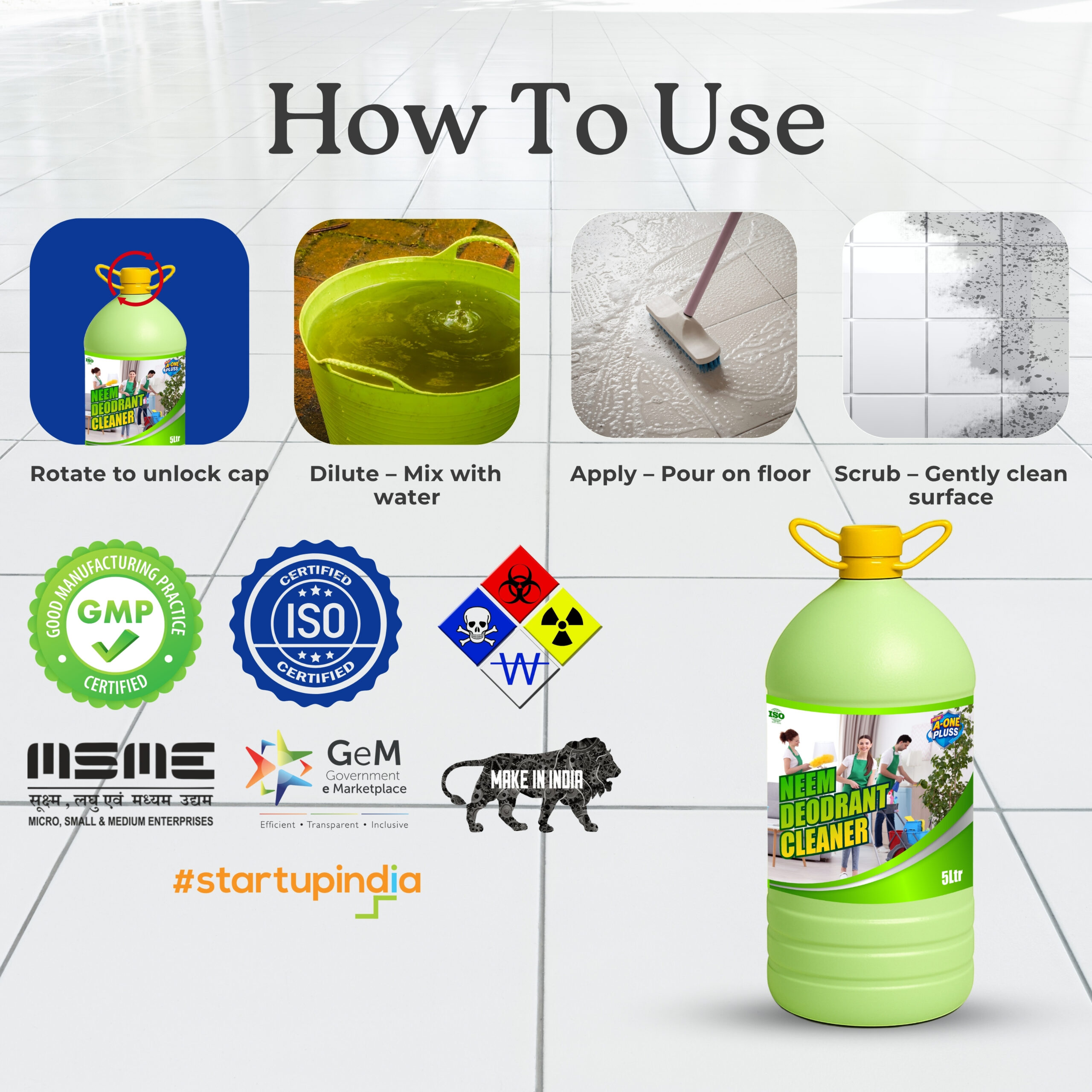 For Regular Cleaning: Mix 20 ml of A-One Pluss Neem Deodorant Cleaner in 1 litre of water. Mop as usual.